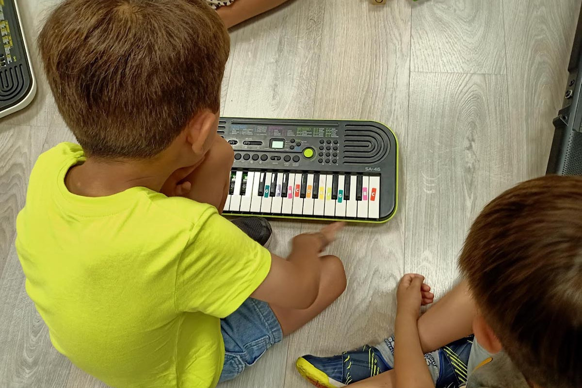 - Petit Band (6 años): inicio del lenguaje musical (lectura, acordes, escalas) y creación colectiva de canciones.
